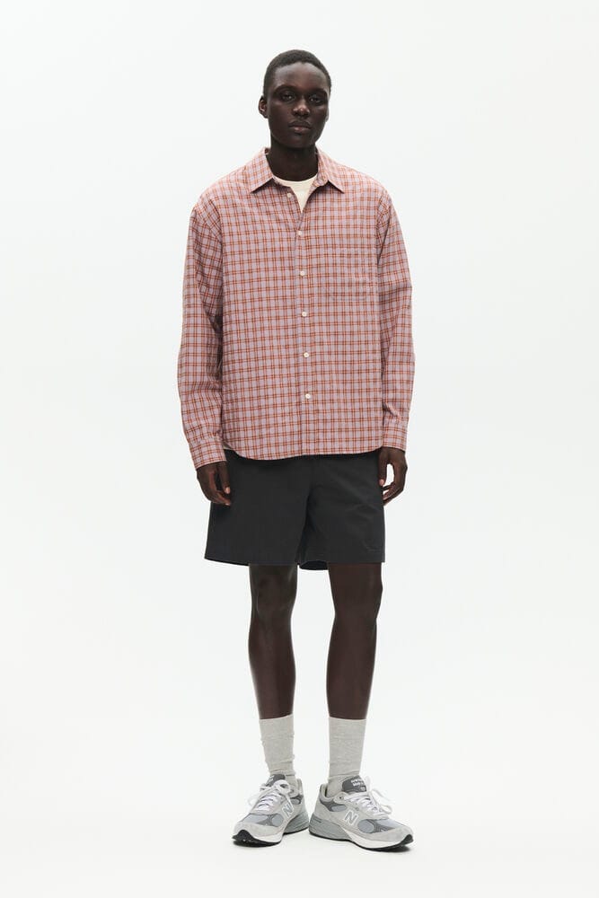 Til fritiden: en casual skjorte fra Gant i hør, stylet med chinos og sneakers.
